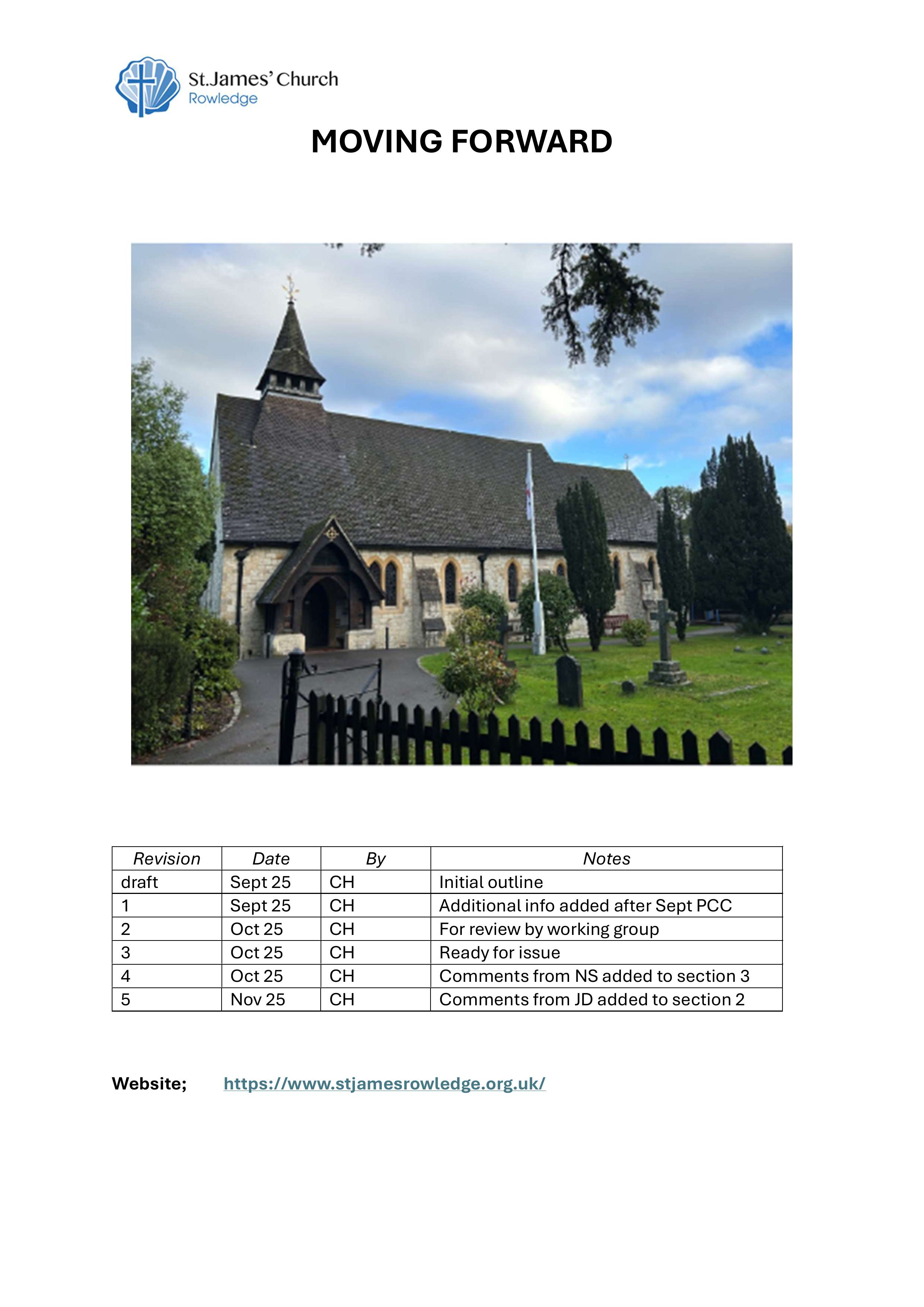 This is the “Moving Forward” that captures information about our buildings; including current use, possible future requirements, and our mission as well as environmental and capital challenges. It provides a base of information for the feasibility study.
